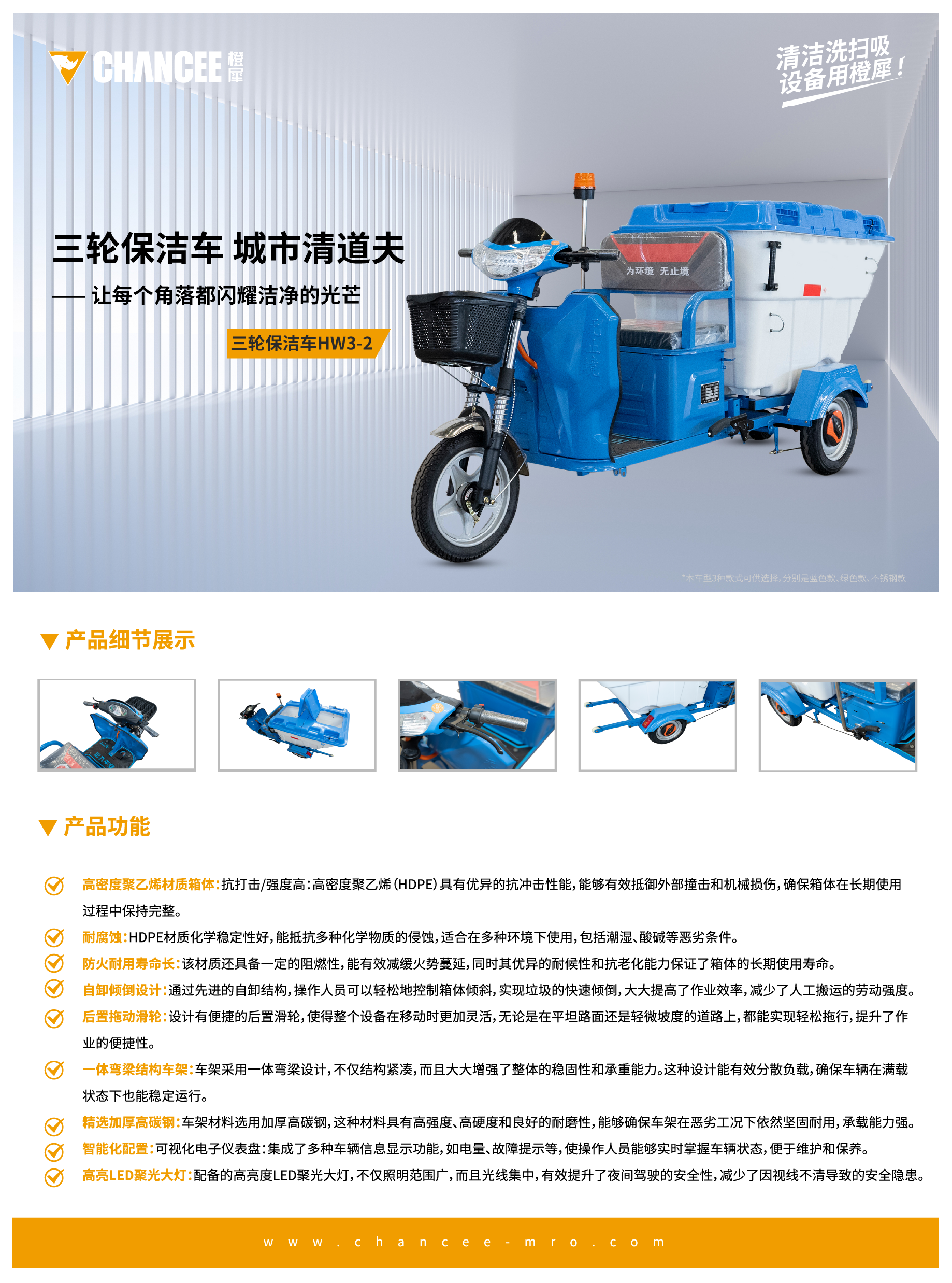 三轮保洁车HW3-不锈钢款